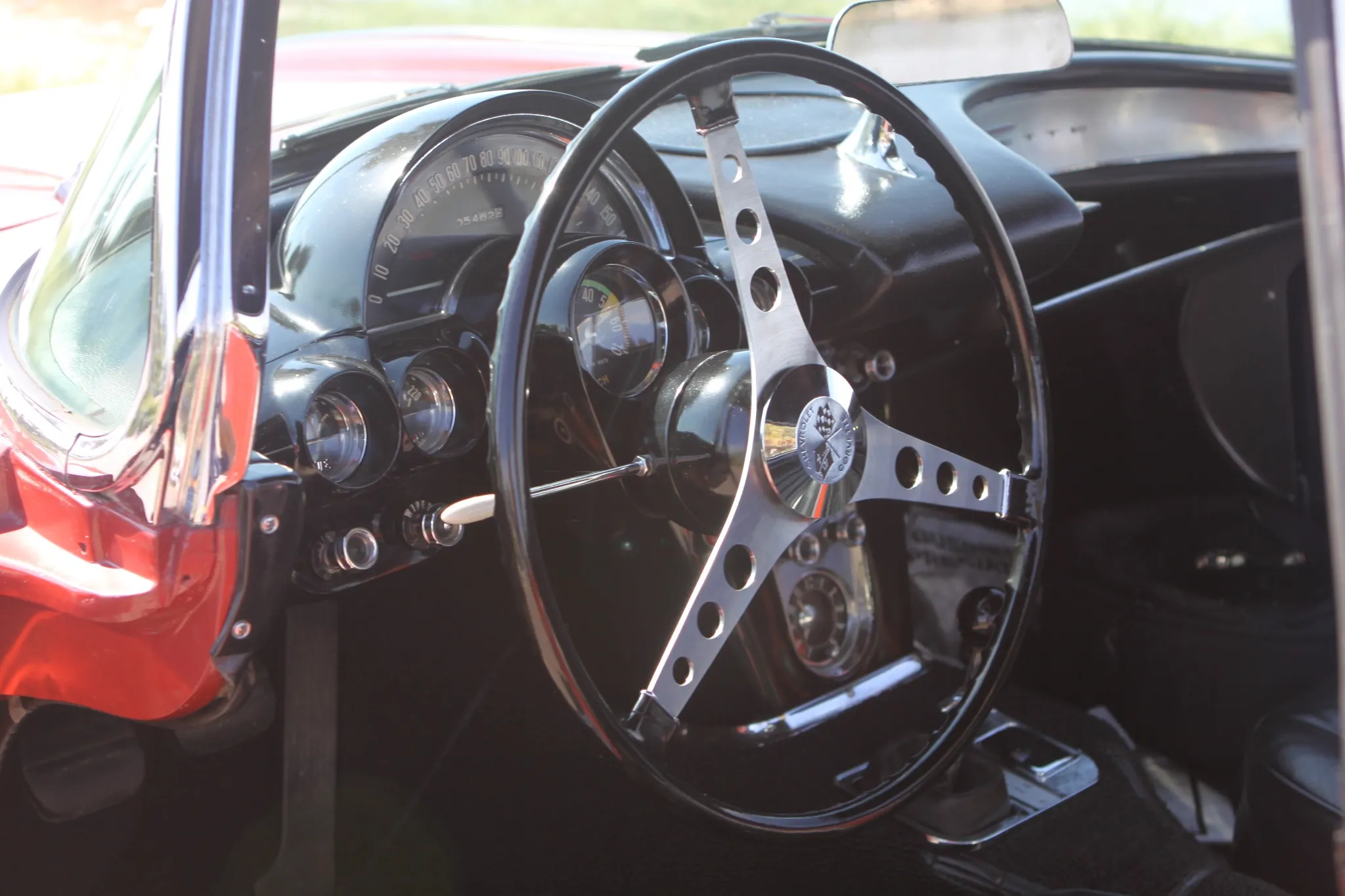 - Large steering wheel with distinctive drilled spokes