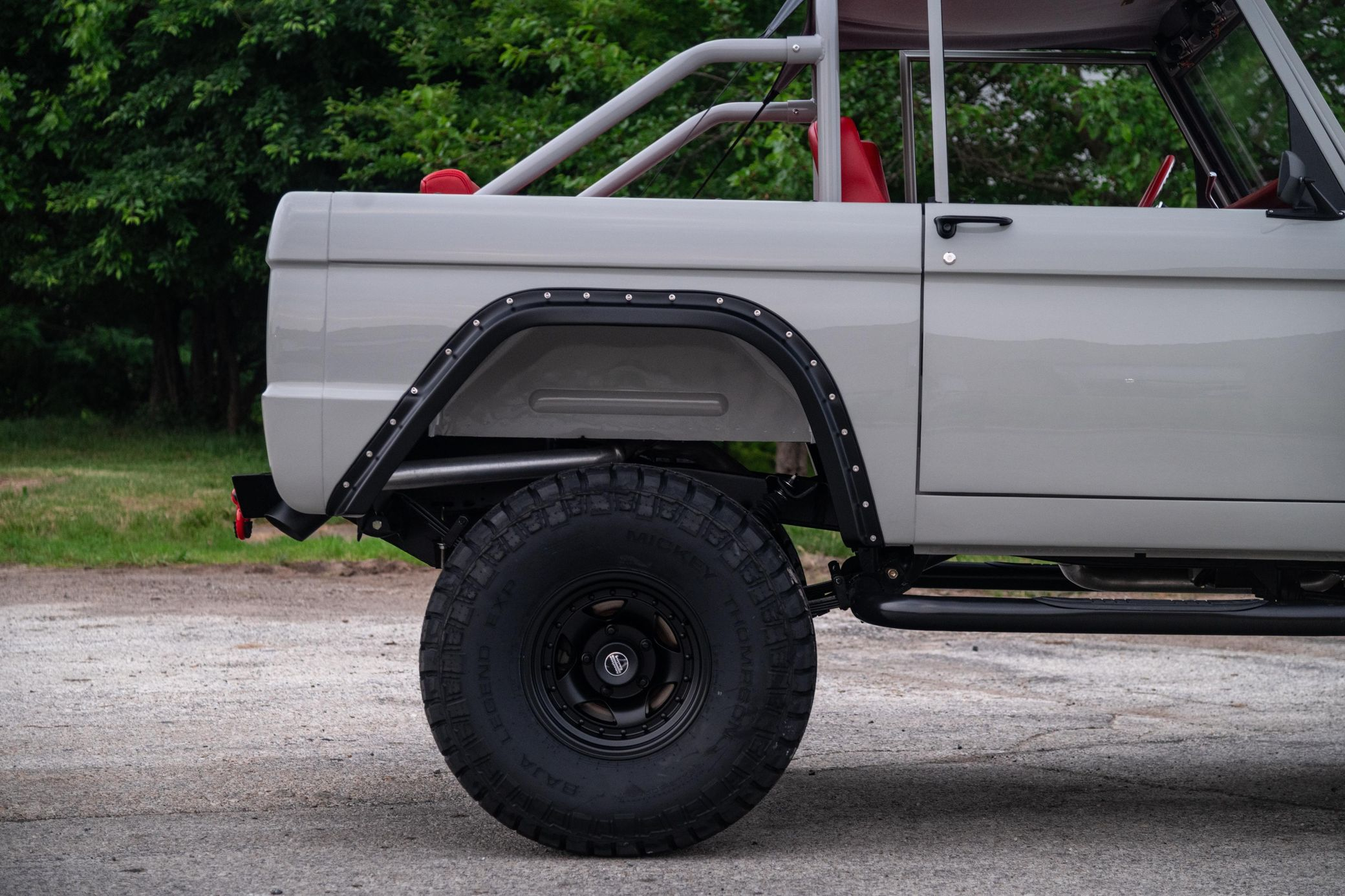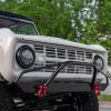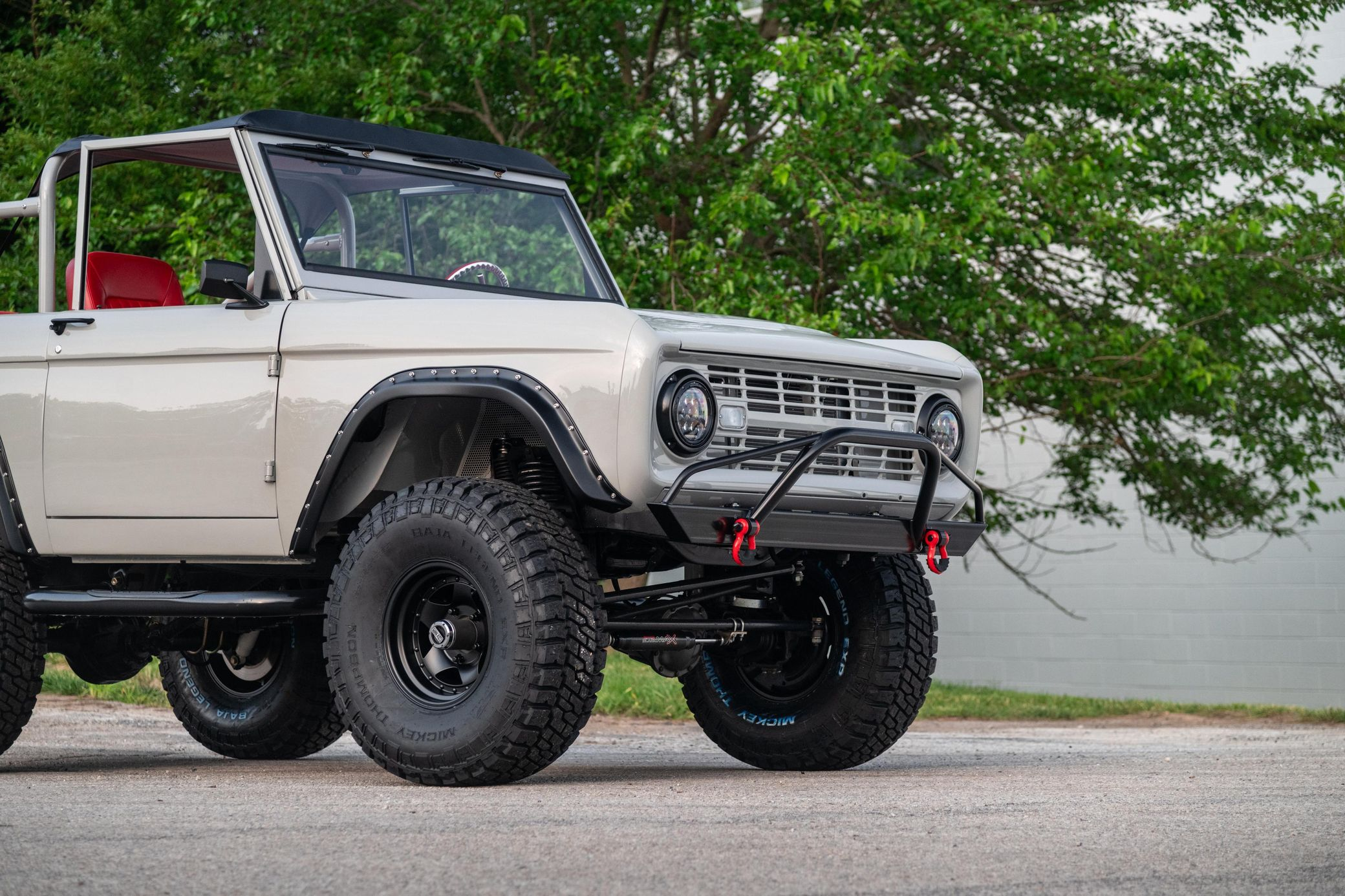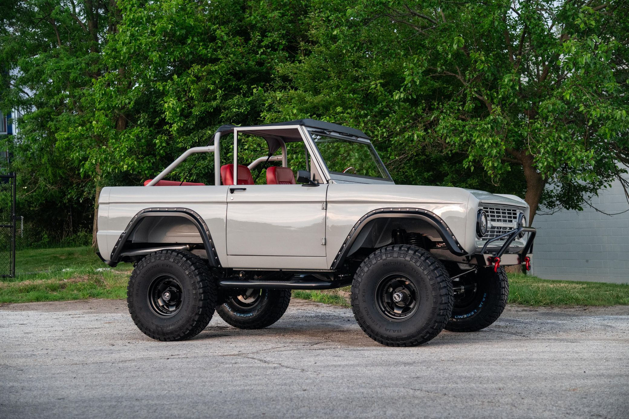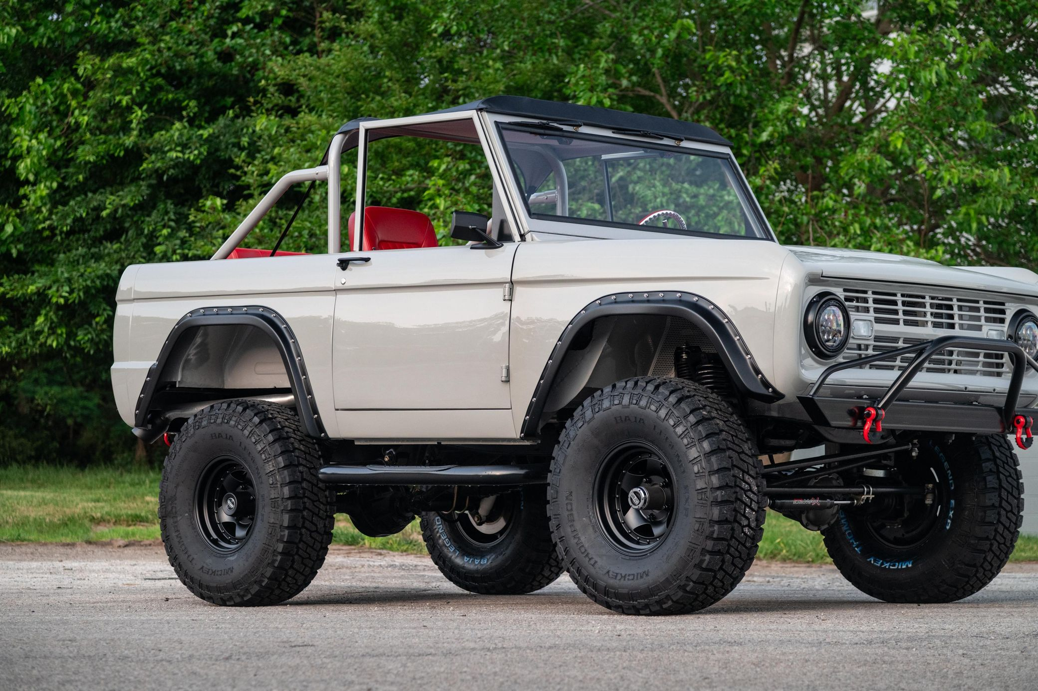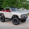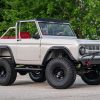 This 1966 Ford Bronco represents the ultimate first-generation restomod, having undergone a comprehensive frame-off restoration in 2021 that transformed it into a modern performance machine while retaining classic styling. Finished in striking Chalk Grey with a black bikini top and red vinyl interior, this Bronco features the crowning achievement of a 5.0-liter Coyote V8 paired with a 6R80 6-speed automatic transmission. With a 4.5-inch lift, 35-inch Mickey Thompson tires, four-wheel disc brakes, and numerous modern amenities, this Bronco combines vintage appeal with contemporary power and reliability for an unparalleled driving experience both on and off-road.