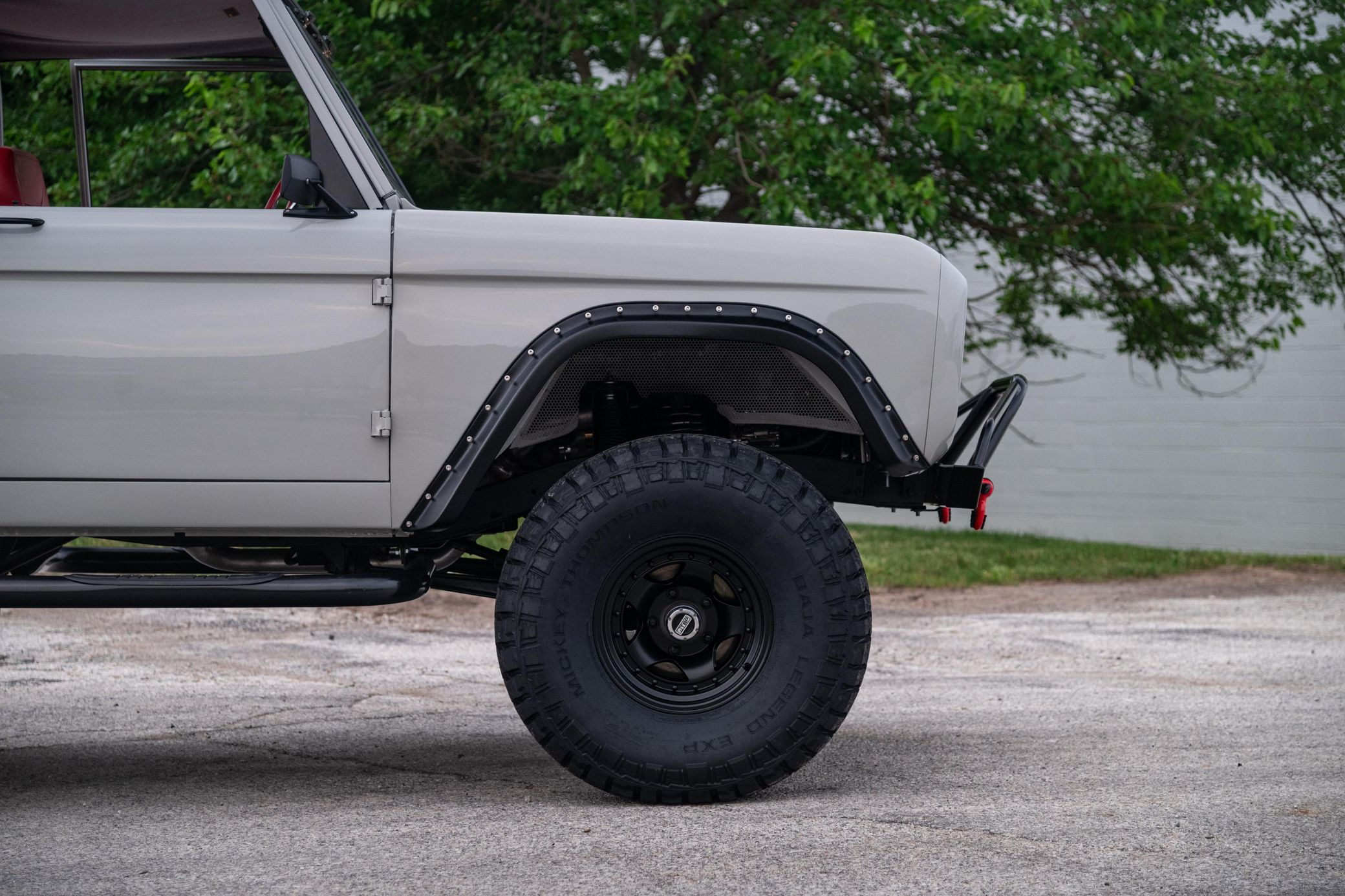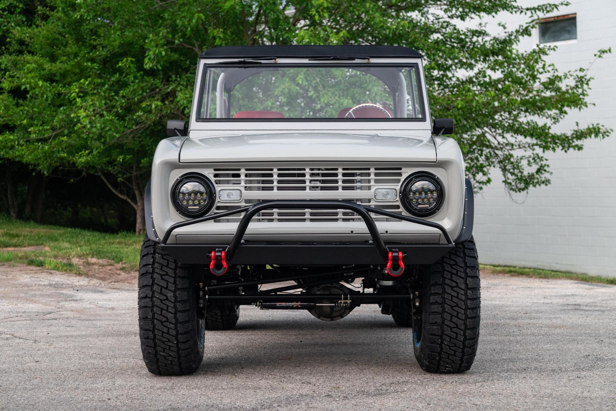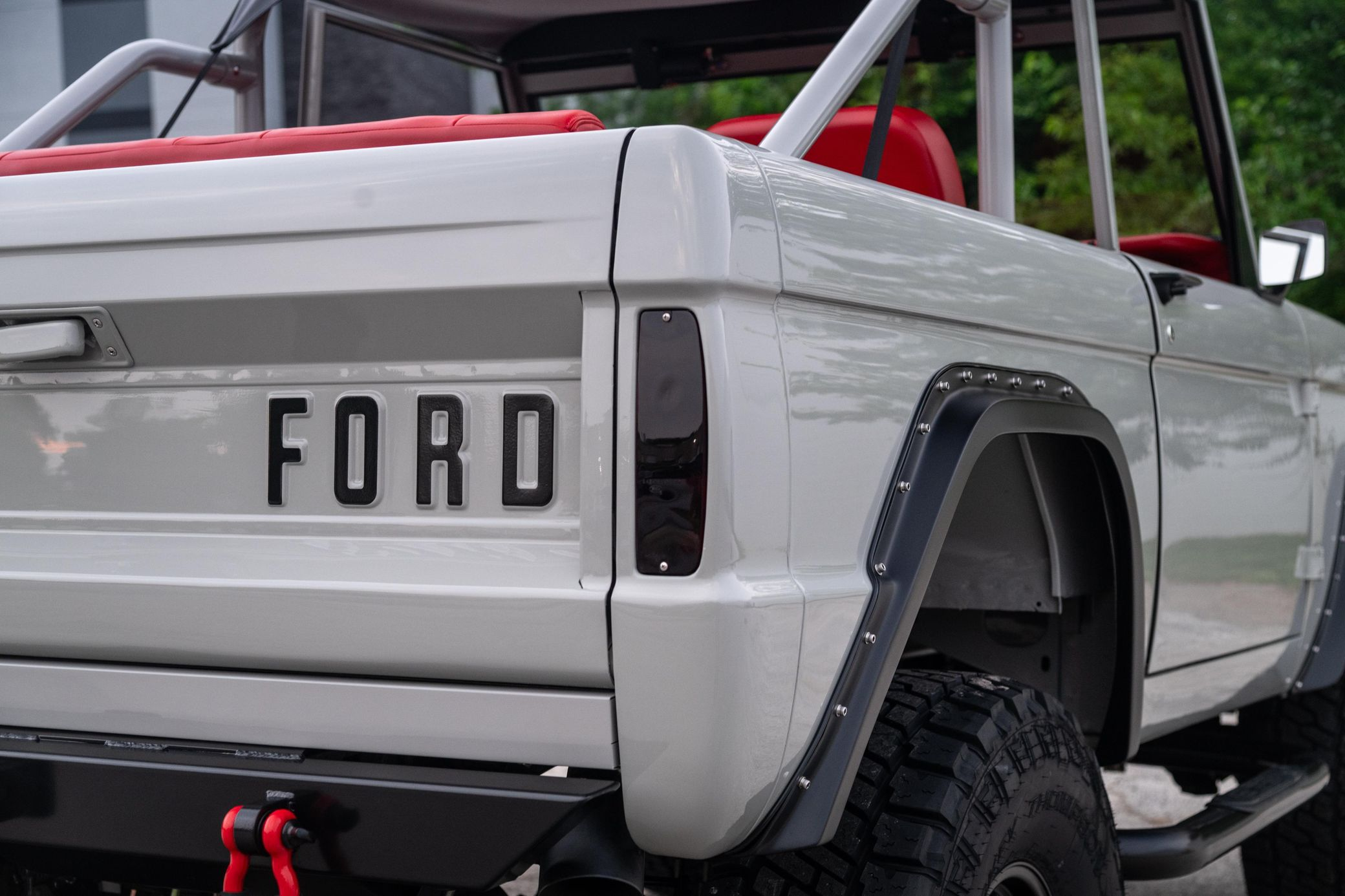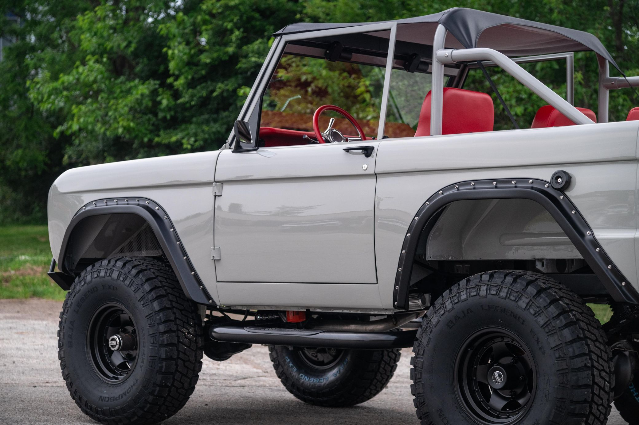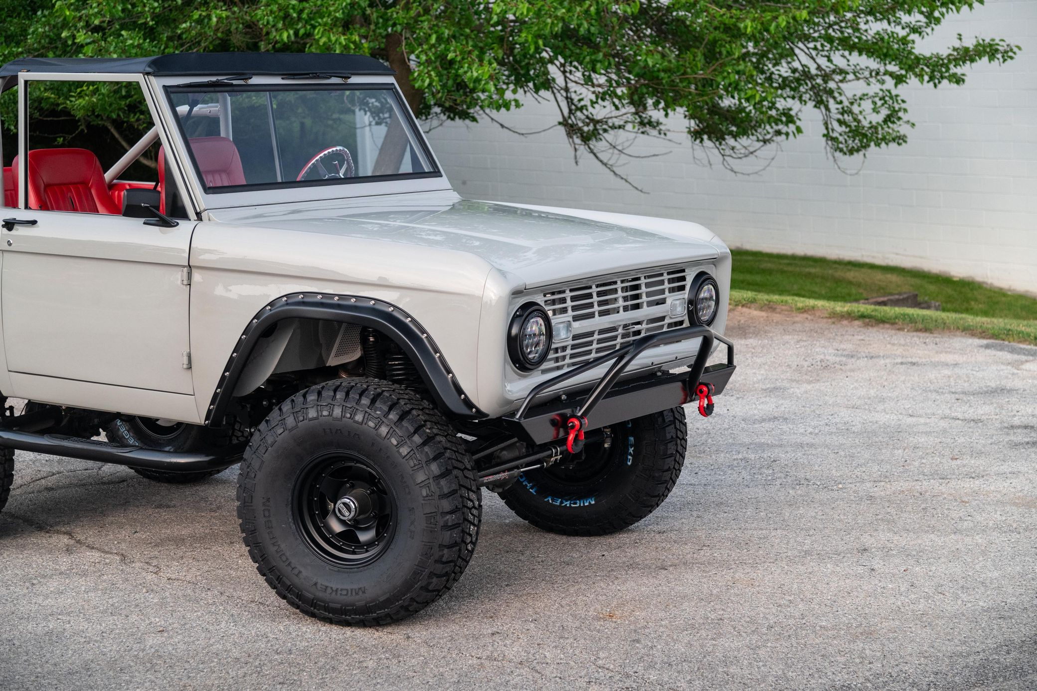 This 1966 Ford Bronco represents the ultimate first-generation restomod, having undergone a comprehensive frame-off restoration in 2021 that transformed it into a modern performance machine while retaining classic styling. Finished in striking Chalk Grey with a black bikini top and red vinyl interior, this Bronco features the crowning achievement of a 5.0-liter Coyote V8 paired with a 6R80 6-speed automatic transmission. With a 4.5-inch lift, 35-inch Mickey Thompson tires, four-wheel disc brakes, and numerous modern amenities, this Bronco combines vintage appeal with contemporary power and reliability for an unparalleled driving experience both on and off-road.