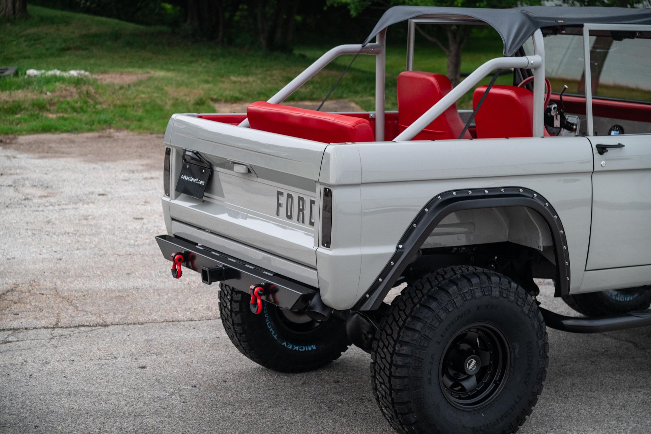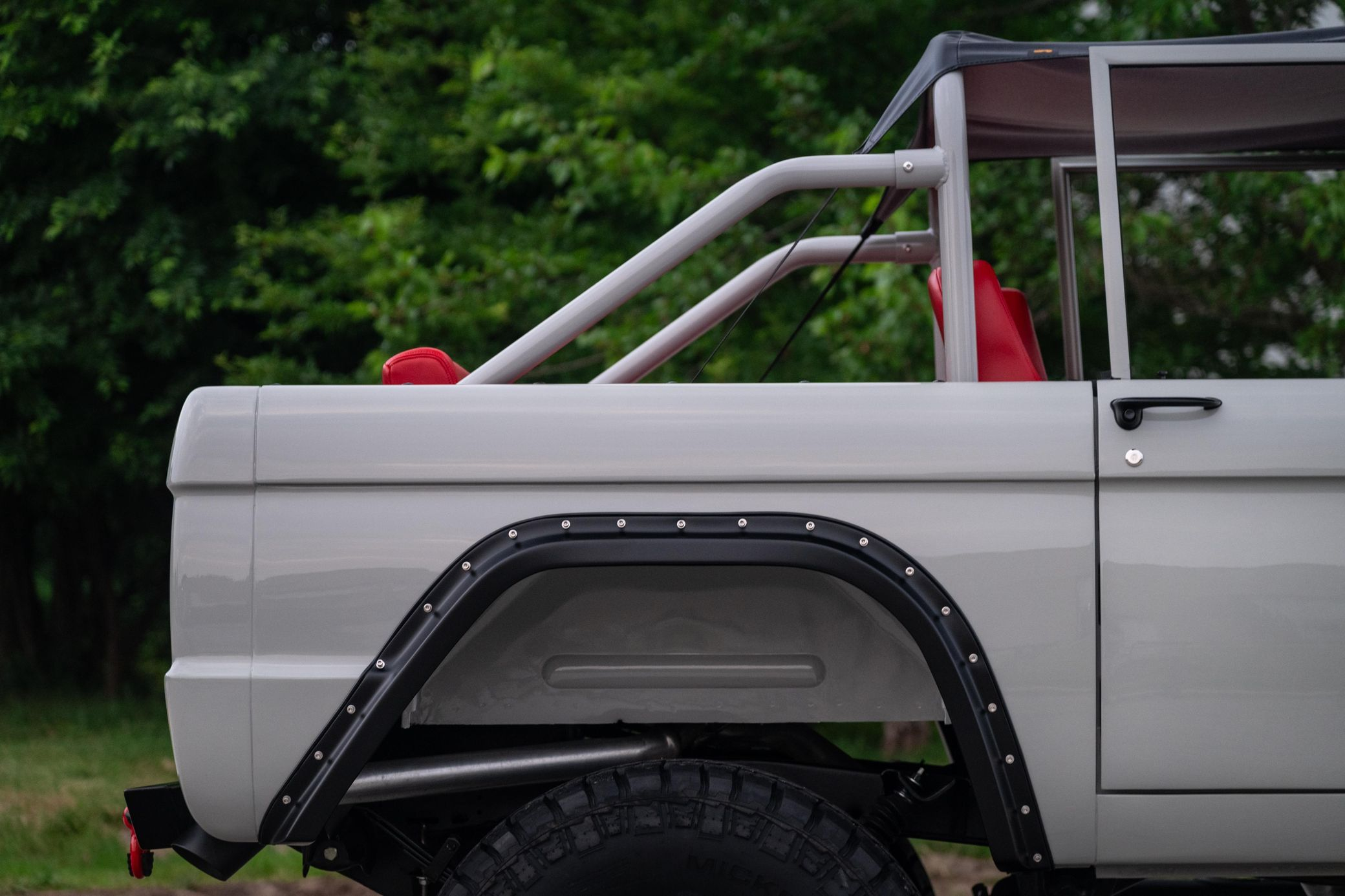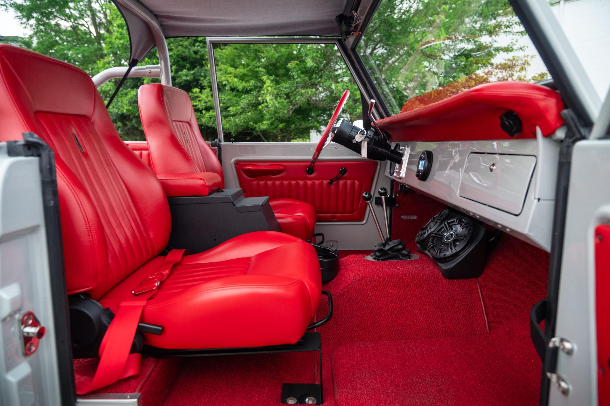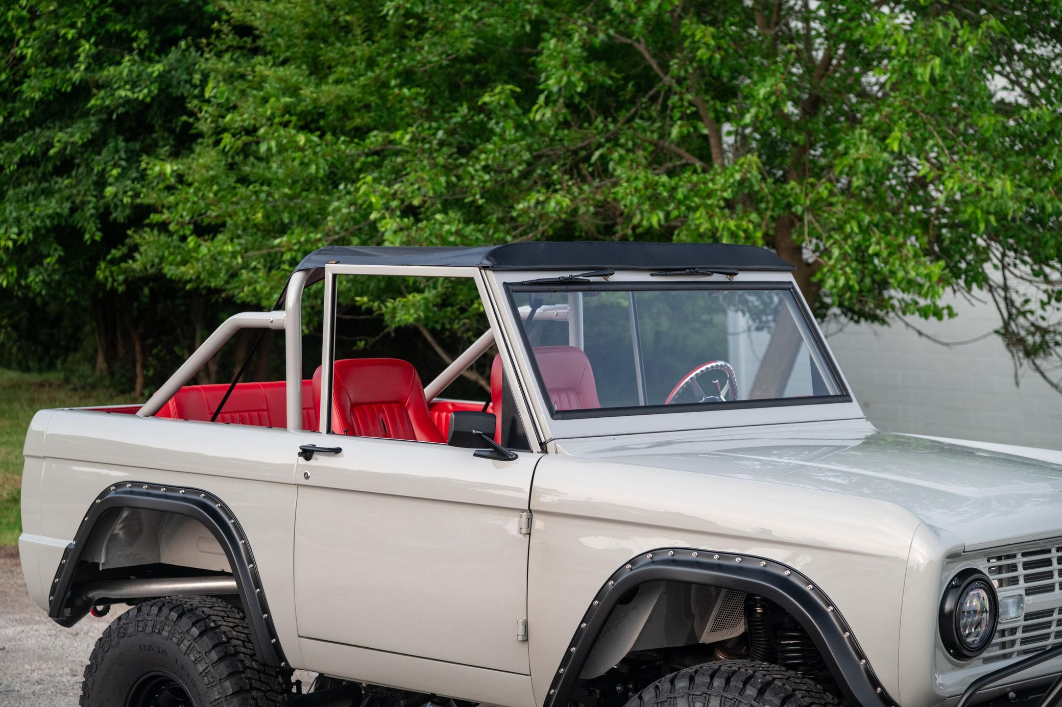 This 1966 Ford Bronco represents the ultimate first-generation restomod, having undergone a comprehensive frame-off restoration in 2021 that transformed it into a modern performance machine while retaining classic styling. Finished in striking Chalk Grey with a black bikini top and red vinyl interior, this Bronco features the crowning achievement of a 5.0-liter Coyote V8 paired with a 6R80 6-speed automatic transmission. With a 4.5-inch lift, 35-inch Mickey Thompson tires, four-wheel disc brakes, and numerous modern amenities, this Bronco combines vintage appeal with contemporary power and reliability for an unparalleled driving experience both on and off-road.
