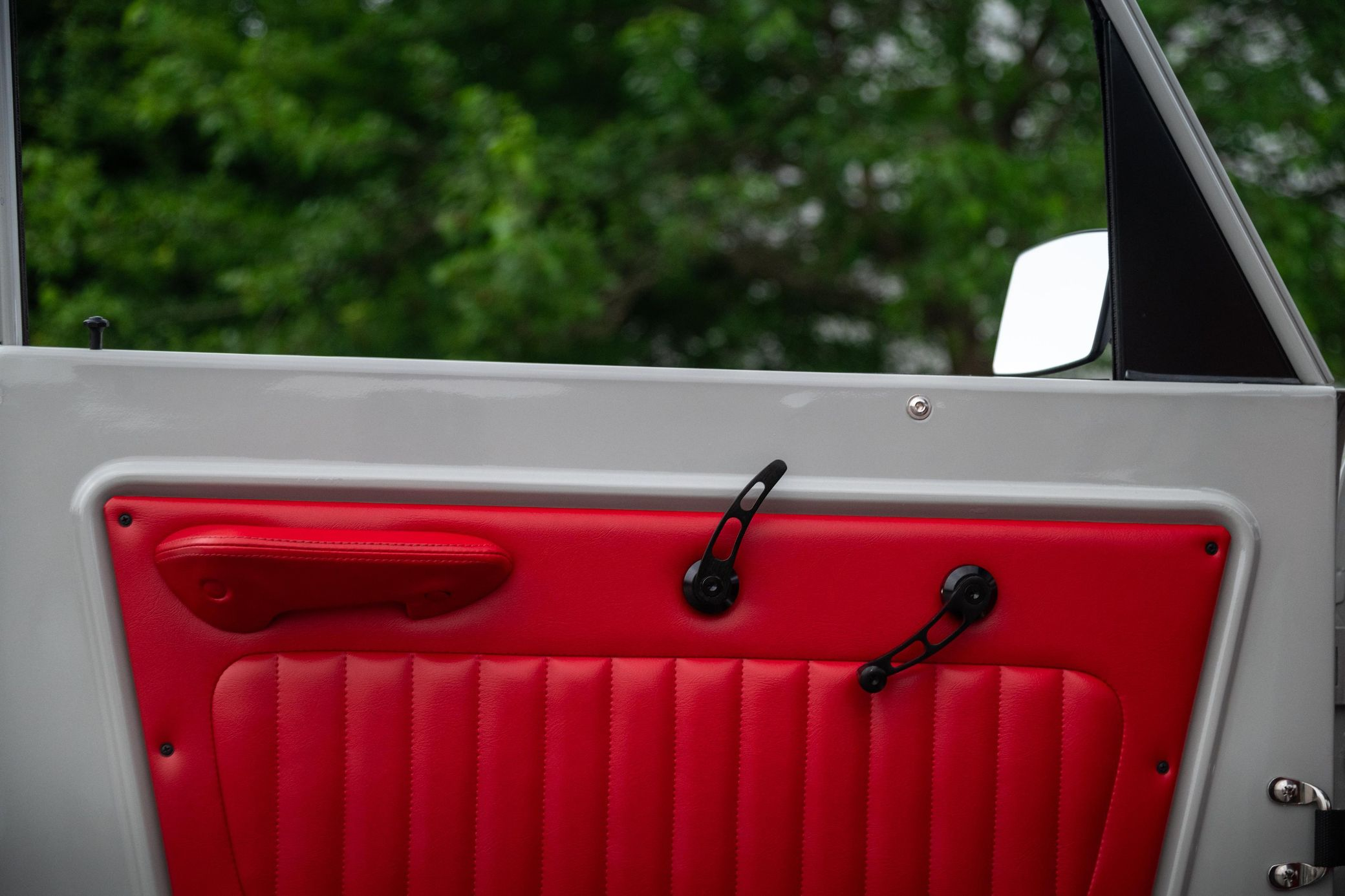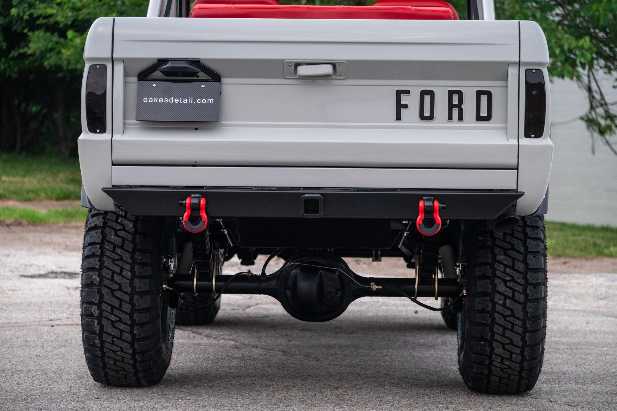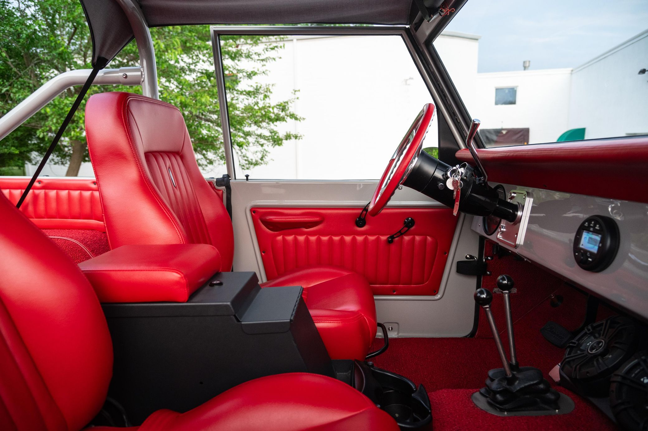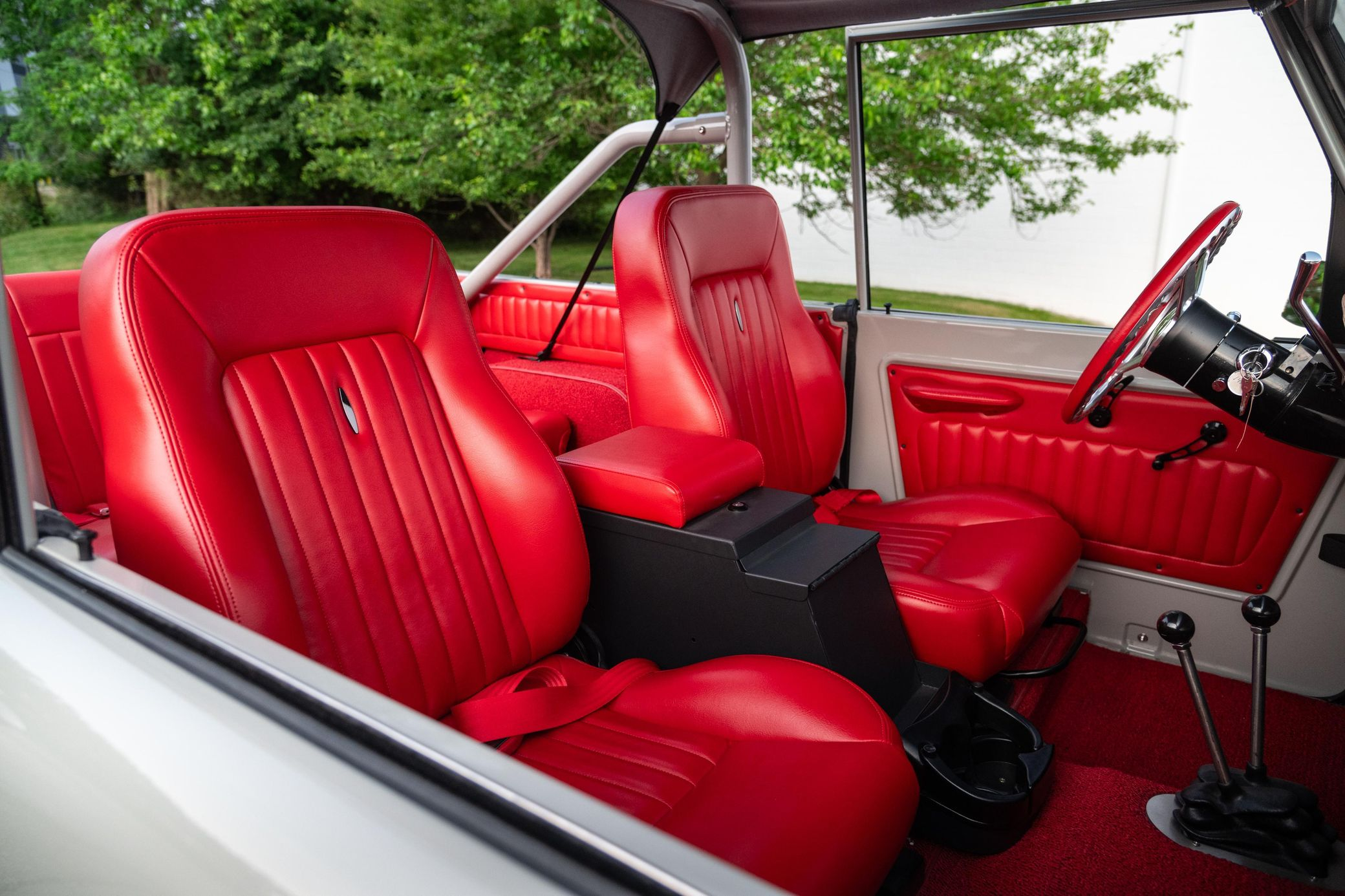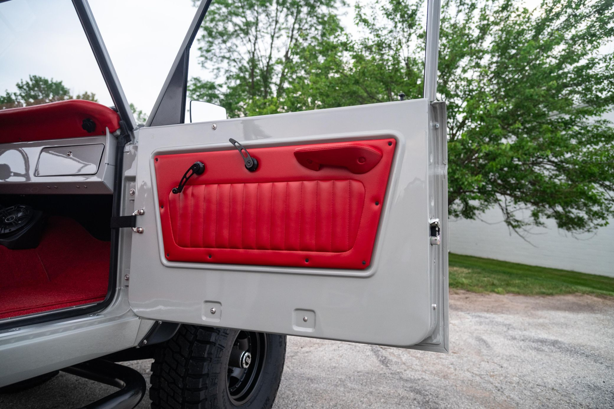 This 1966 Ford Bronco represents the ultimate first-generation restomod, having undergone a comprehensive frame-off restoration in 2021 that transformed it into a modern performance machine while retaining classic styling. Finished in striking Chalk Grey with a black bikini top and red vinyl interior, this Bronco features the crowning achievement of a 5.0-liter Coyote V8 paired with a 6R80 6-speed automatic transmission. With a 4.5-inch lift, 35-inch Mickey Thompson tires, four-wheel disc brakes, and numerous modern amenities, this Bronco combines vintage appeal with contemporary power and reliability for an unparalleled driving experience both on and off-road.
