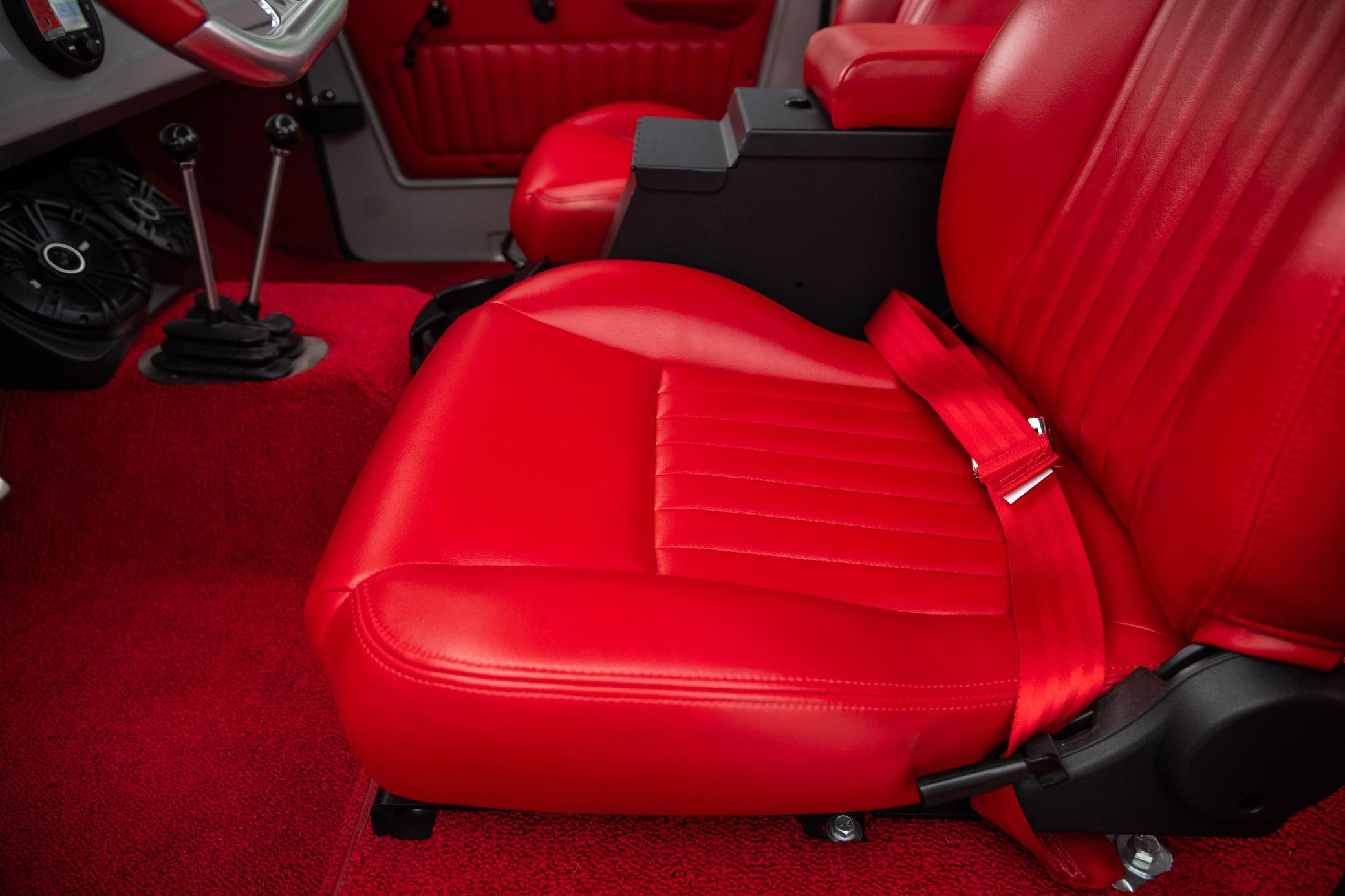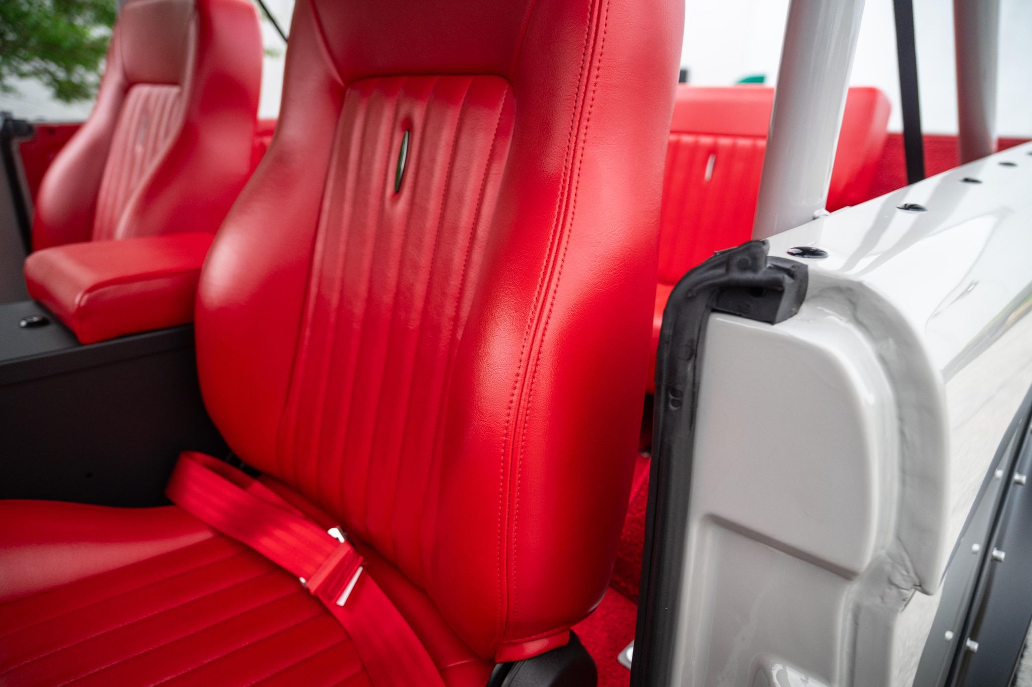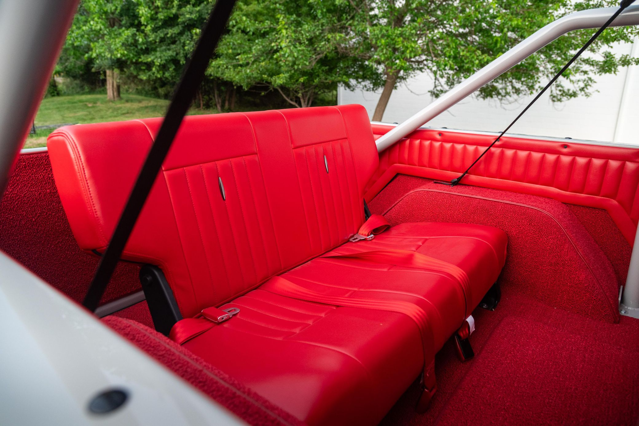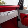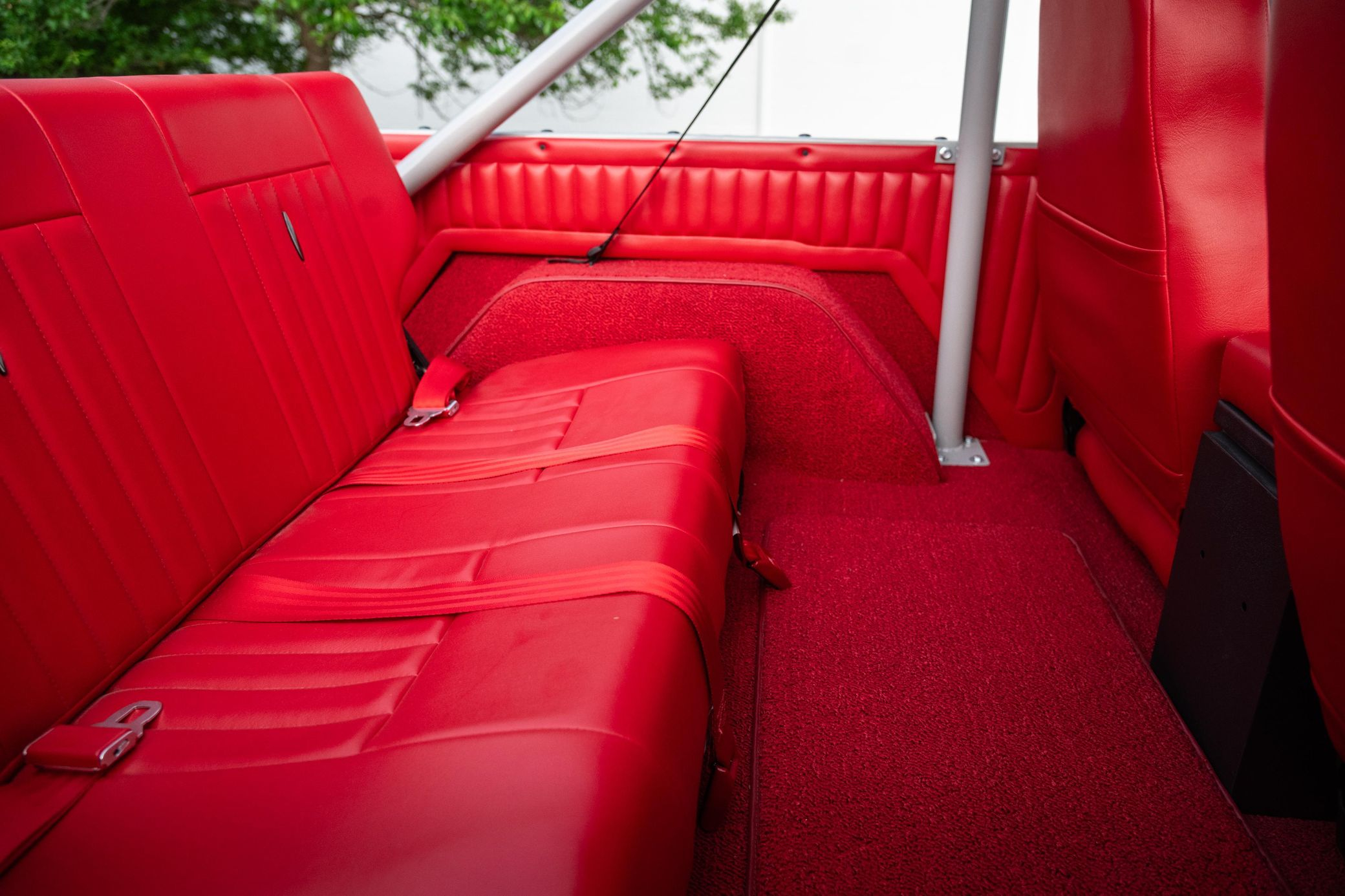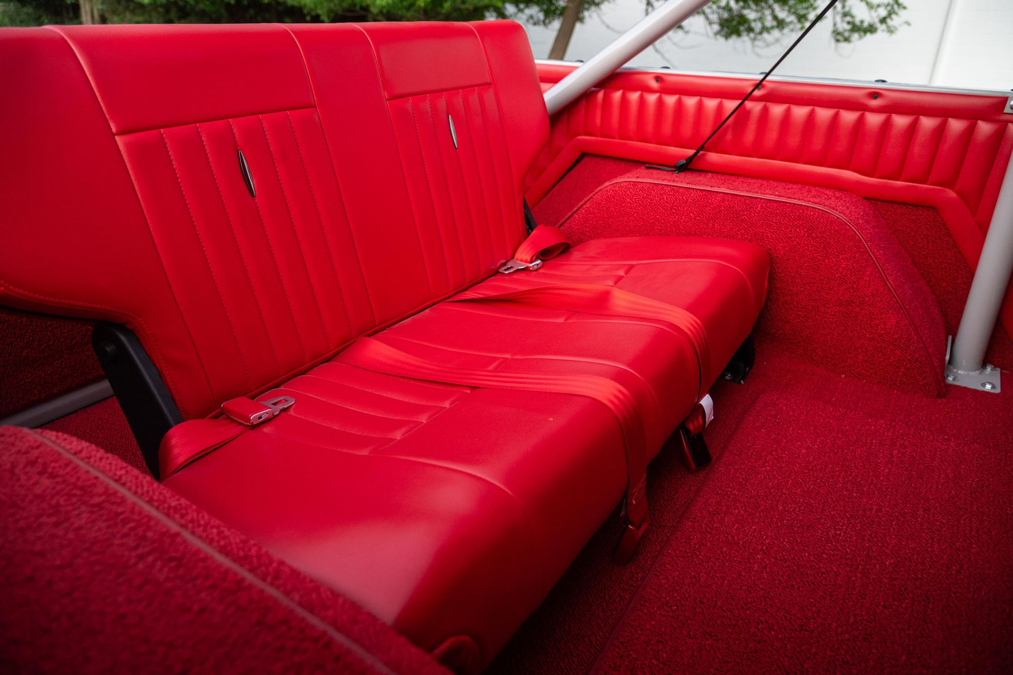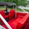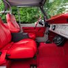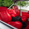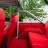 - Red vinyl upholstery throughout