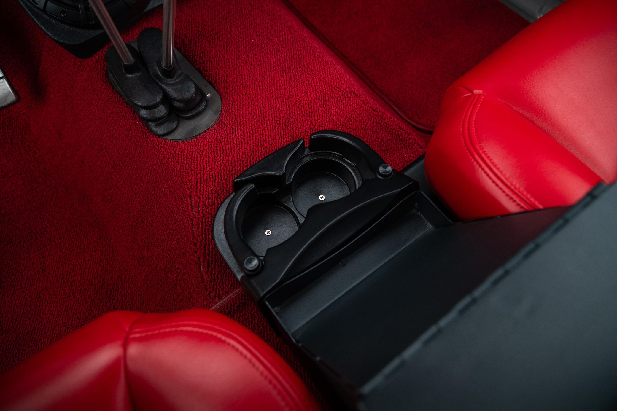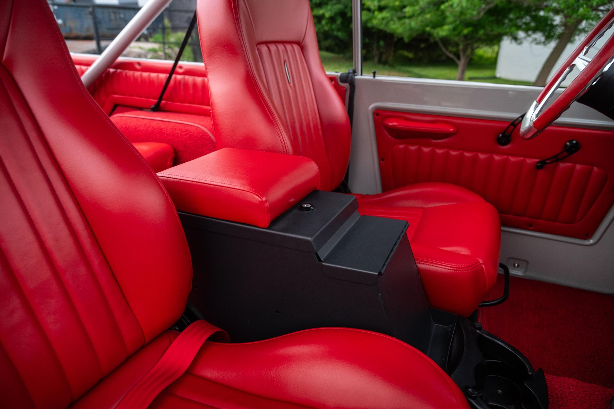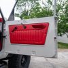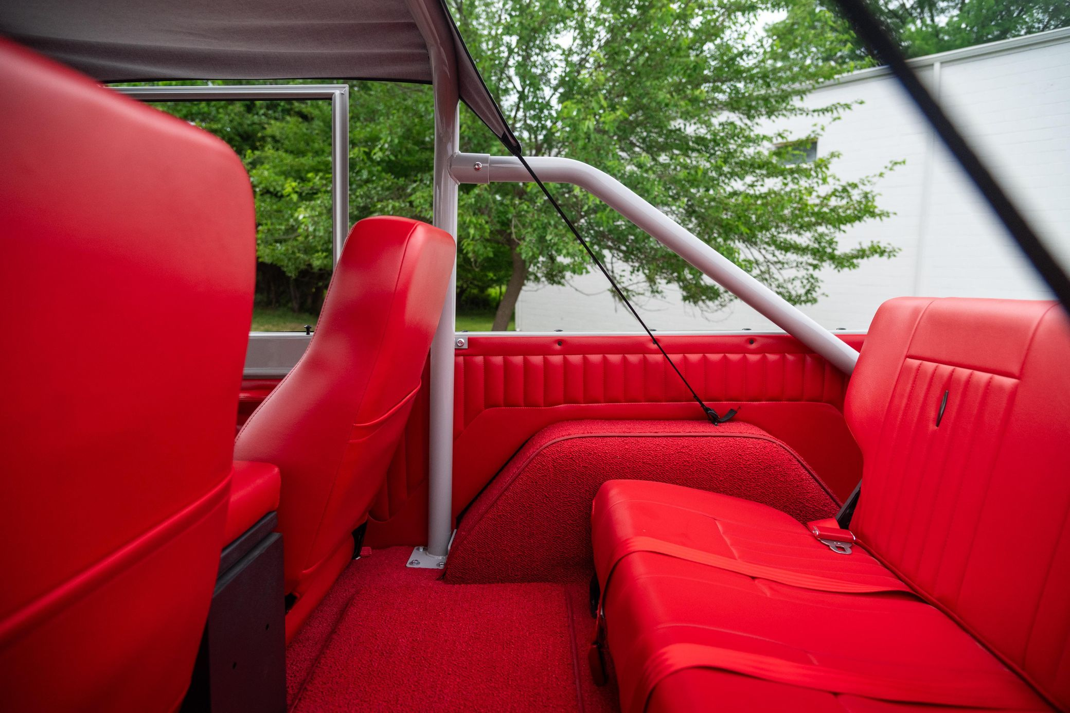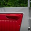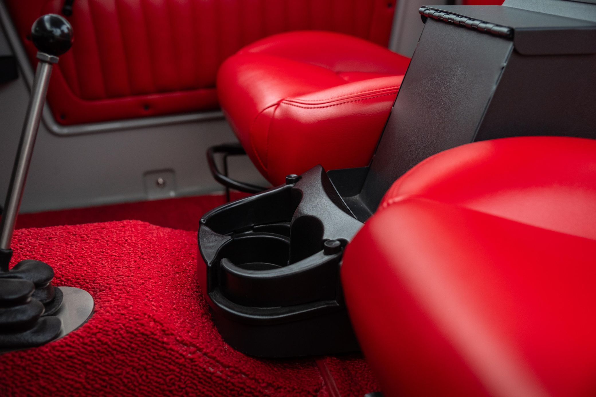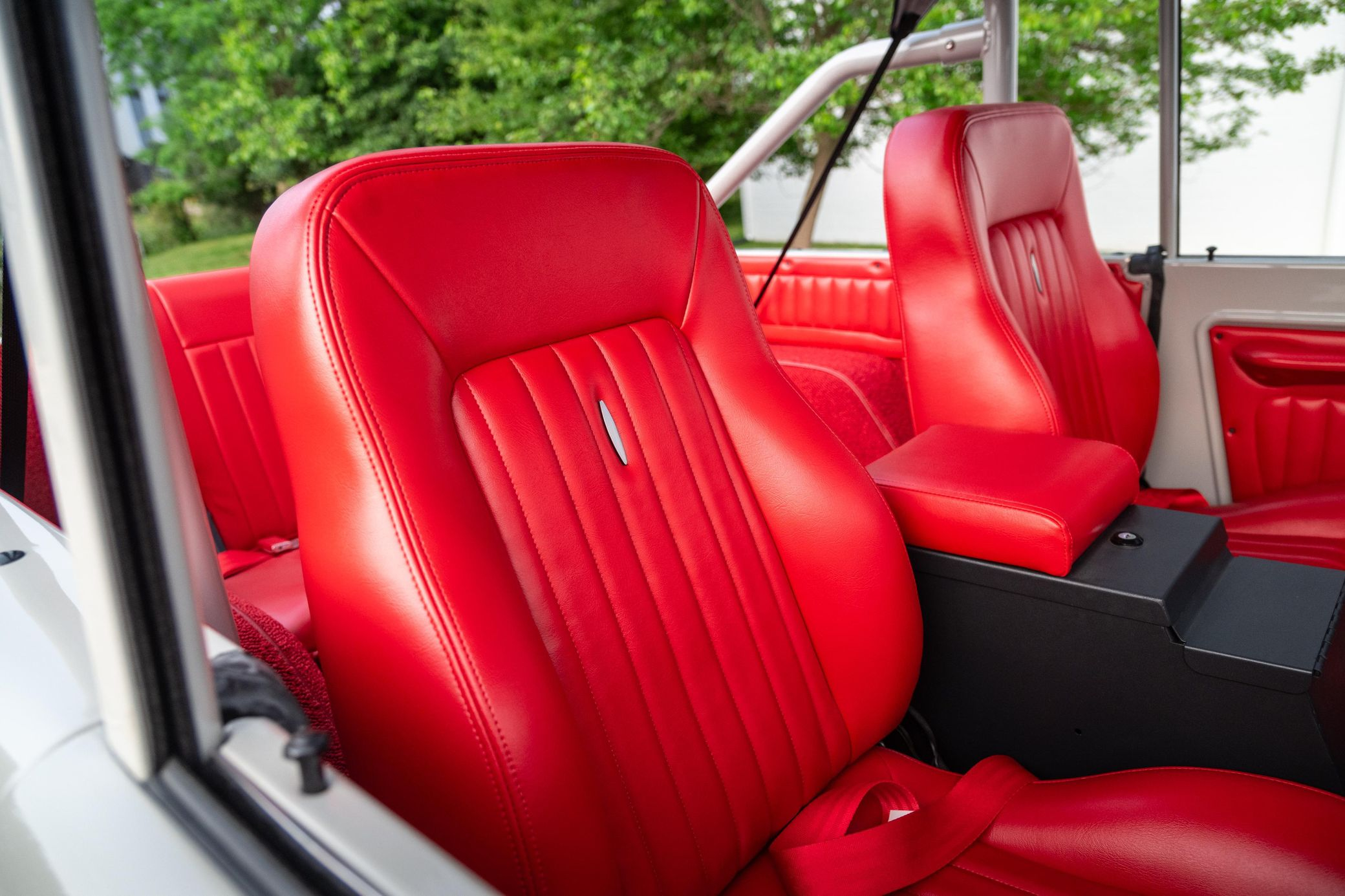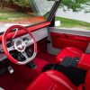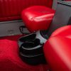 - Red vinyl upholstery throughout