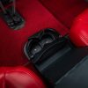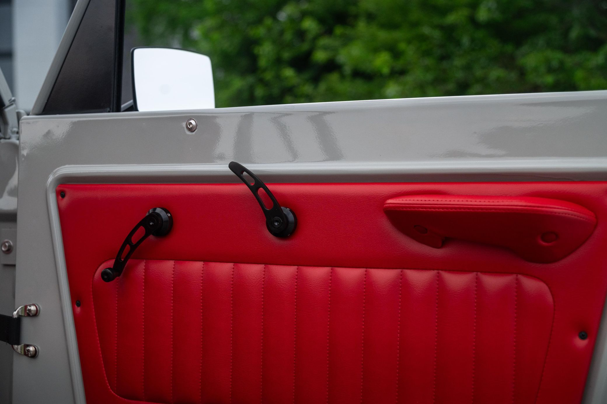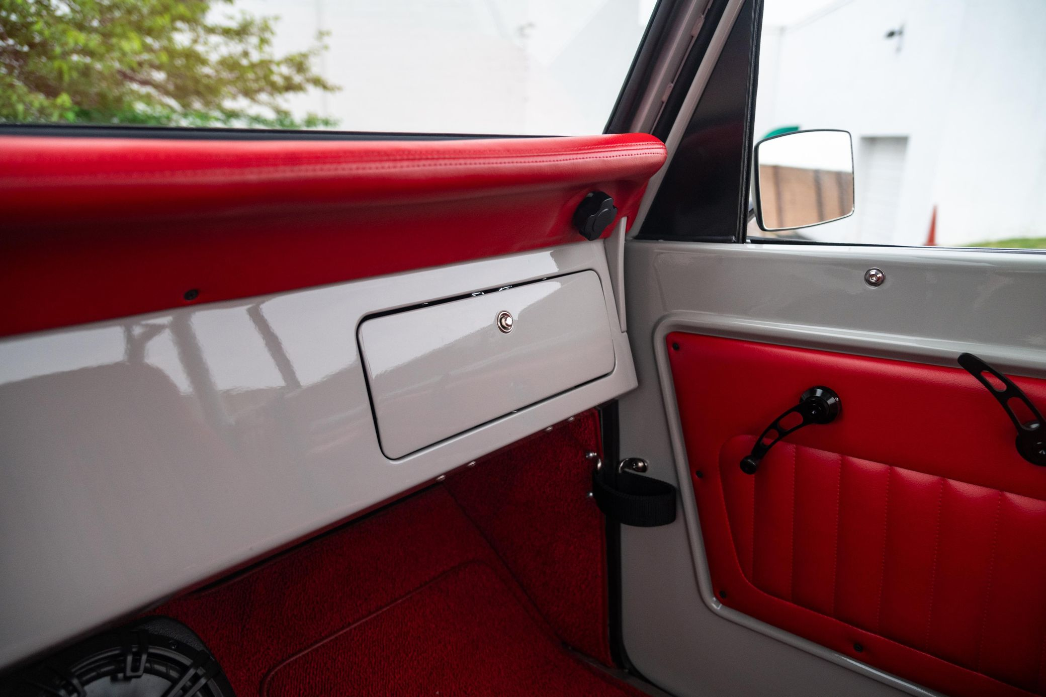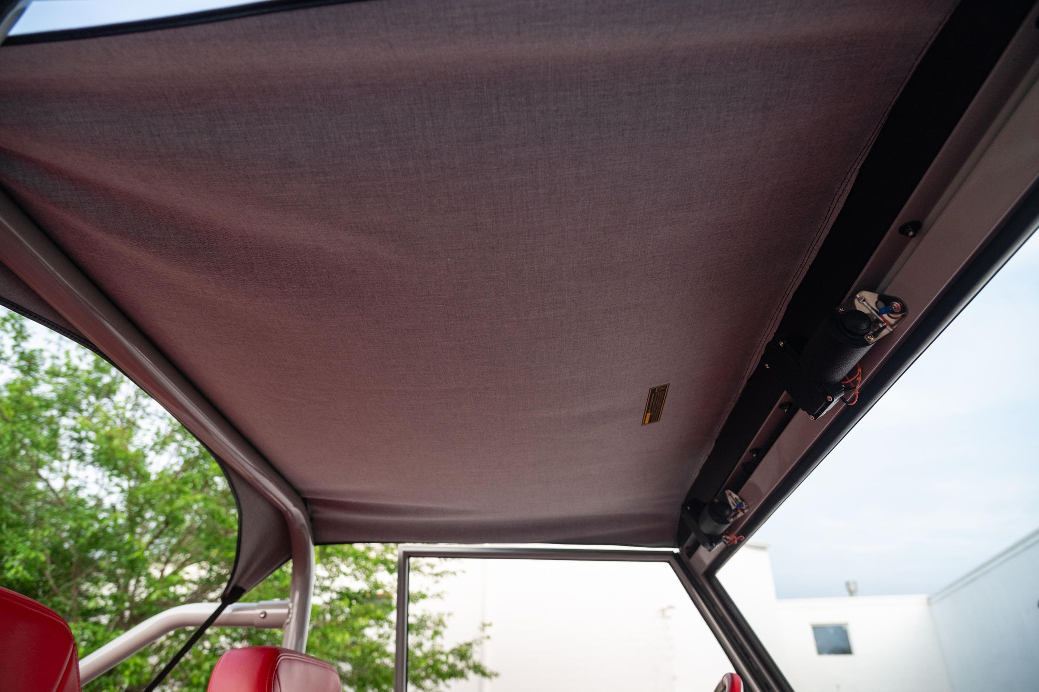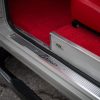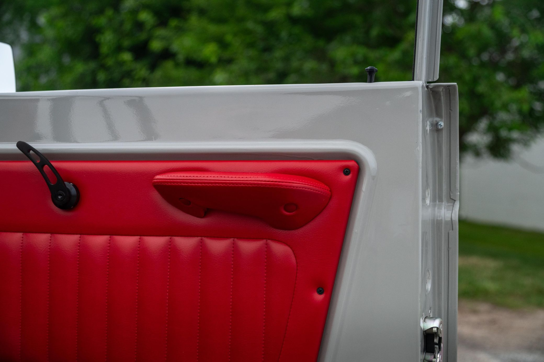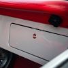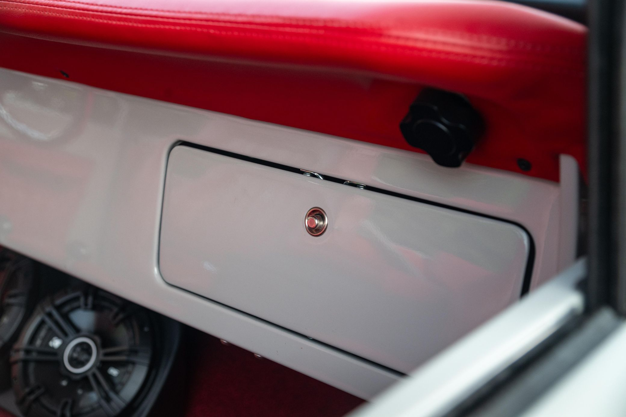 - Red vinyl upholstery throughout