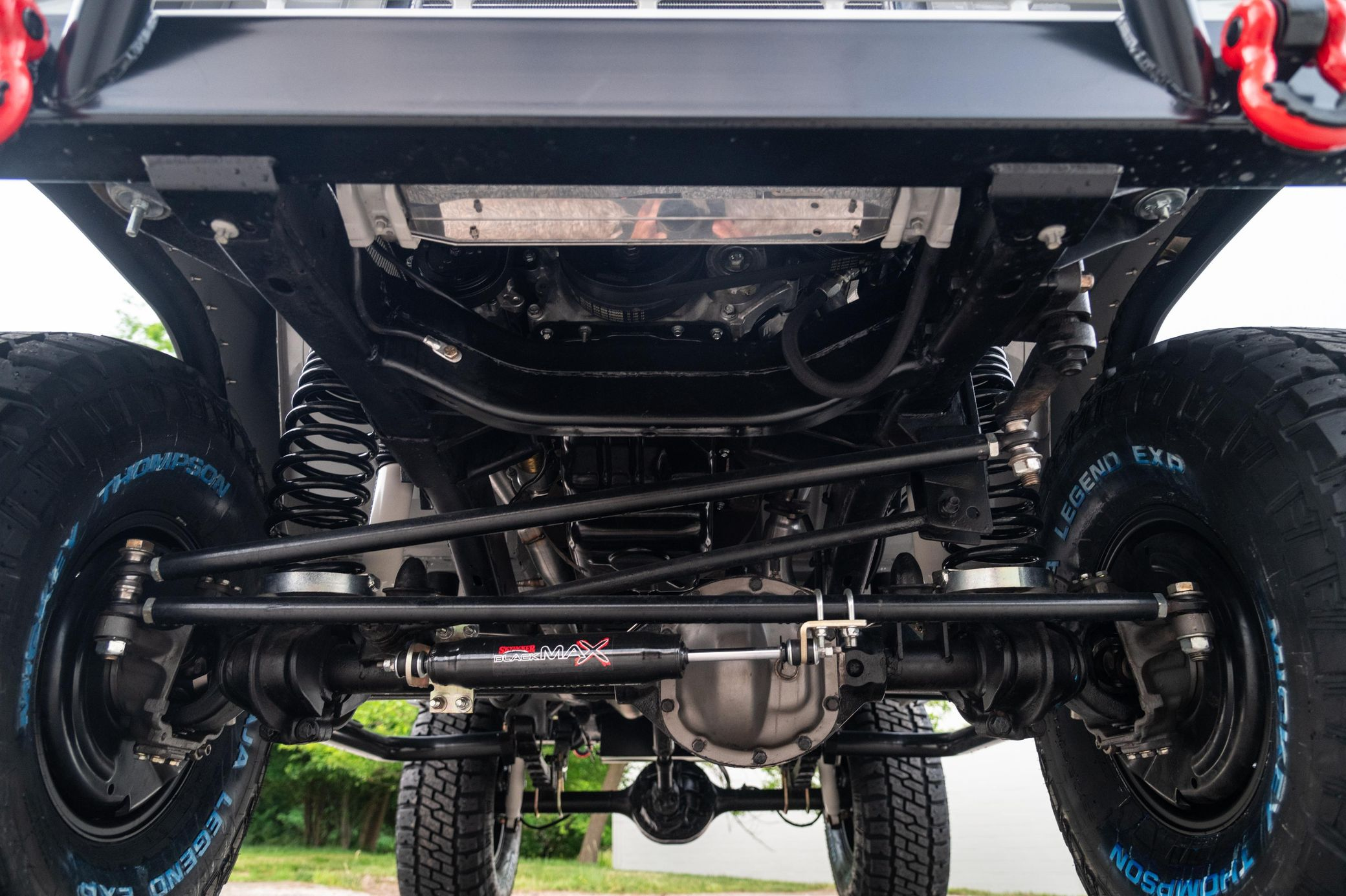 - Steel bumpers with recovery hooks and hitch receiver