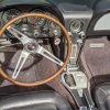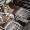 - Black vinyl interior with replacement carpets, Delco AM/FM radio, and wood-rimmed steering wheel