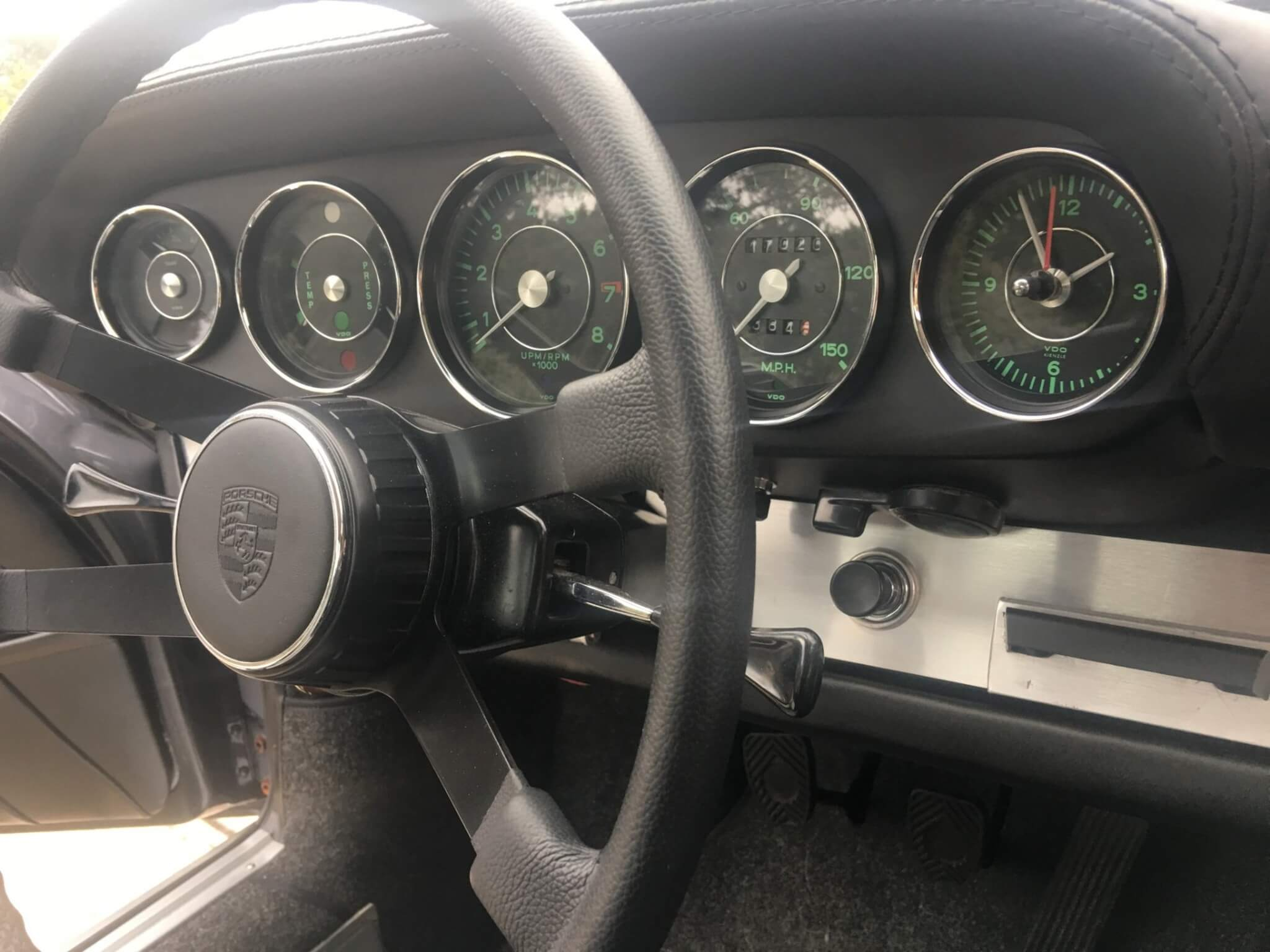 This 1967 Porsche 911 SWB underwent a no-expense-spared restoration by an expert Porsche restorer with shop ownership experience, ensuring every detail meets the highest standards. The Slate Gray exterior pays homage to Steve McQueen’s famous Porsche while presenting a sophisticated, timeless appearance. The interior features distinctive custom houndstooth inserts and a perforated white headliner, complemented by fully restored VDO instrumentation with brushed metal trim. With only 1,000 miles since completion, correct vintage-style tires, and comprehensive mechanical rebuilding, this short-wheelbase 911 offers the perfect combination of classic Porsche character, sorted mechanical condition, and exceptional presentation that will satisfy the most discerning collector or enthusiast.