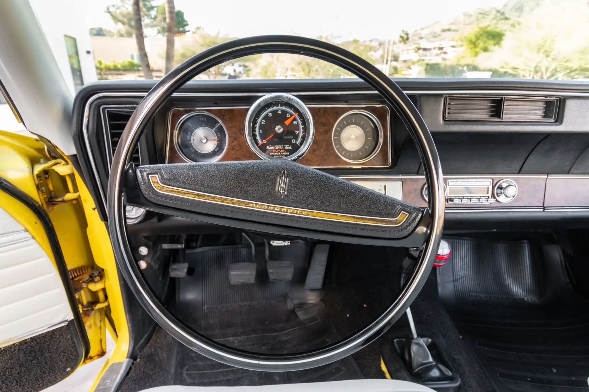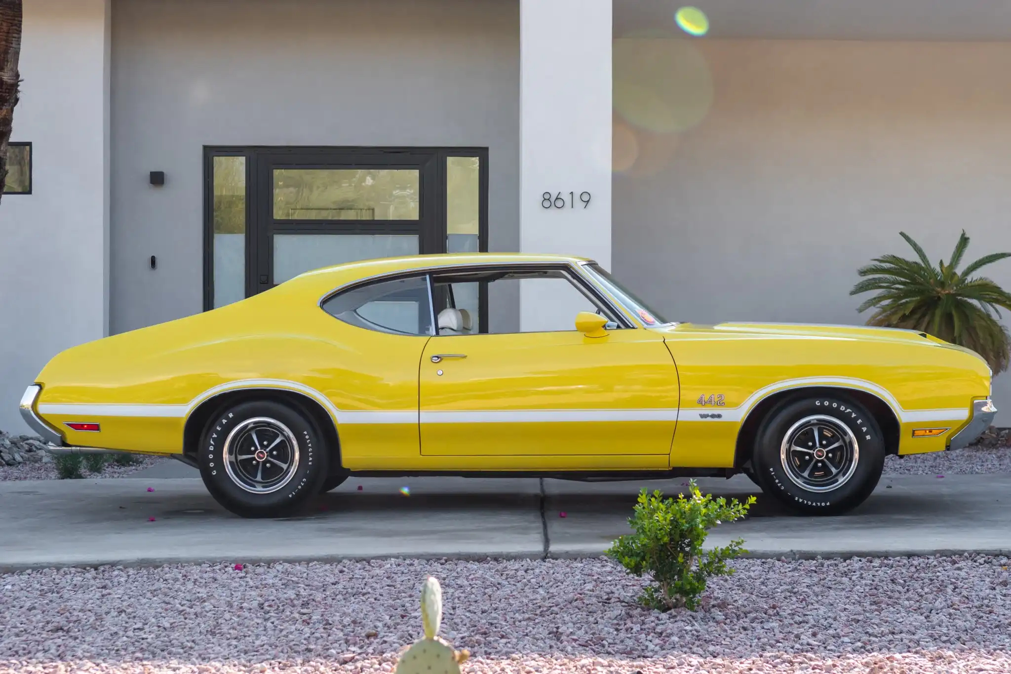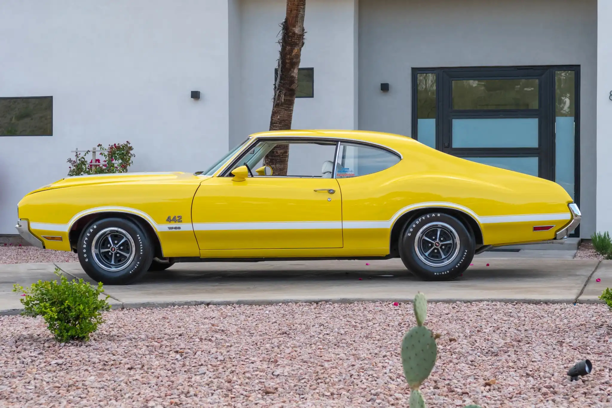 This 1970 Oldsmobile 442 coupe represents the pinnacle of GM’s muscle car era, factory-equipped with the legendary W30 performance package and powered by its numbers-matching 455ci V8 mated to a 4-speed manual transmission. Presented in its correct Sebring Yellow (51) with white W30 stripes over an Ivory vinyl interior (937), this rare and highly collectible 442 delivers authentic, documentable performance pedigree.
