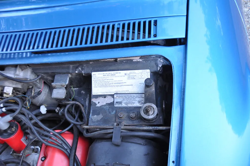 Complete maintenance and restoration records from current ownership are included, along with partial documentation from the 1980s and 1990s supporting the 93,482-mile odometer reading as accurate. The car was found to have solid fiberglass panels underneath the original faded finish when stripped for repainting. Originally purchased six years ago with a big-block truck engine, the current correct-year 454 was located after an extensive search and built to high-performance specifications while maintaining stock appearance. Described as very fast with fantastic sound and excellent driving manners.