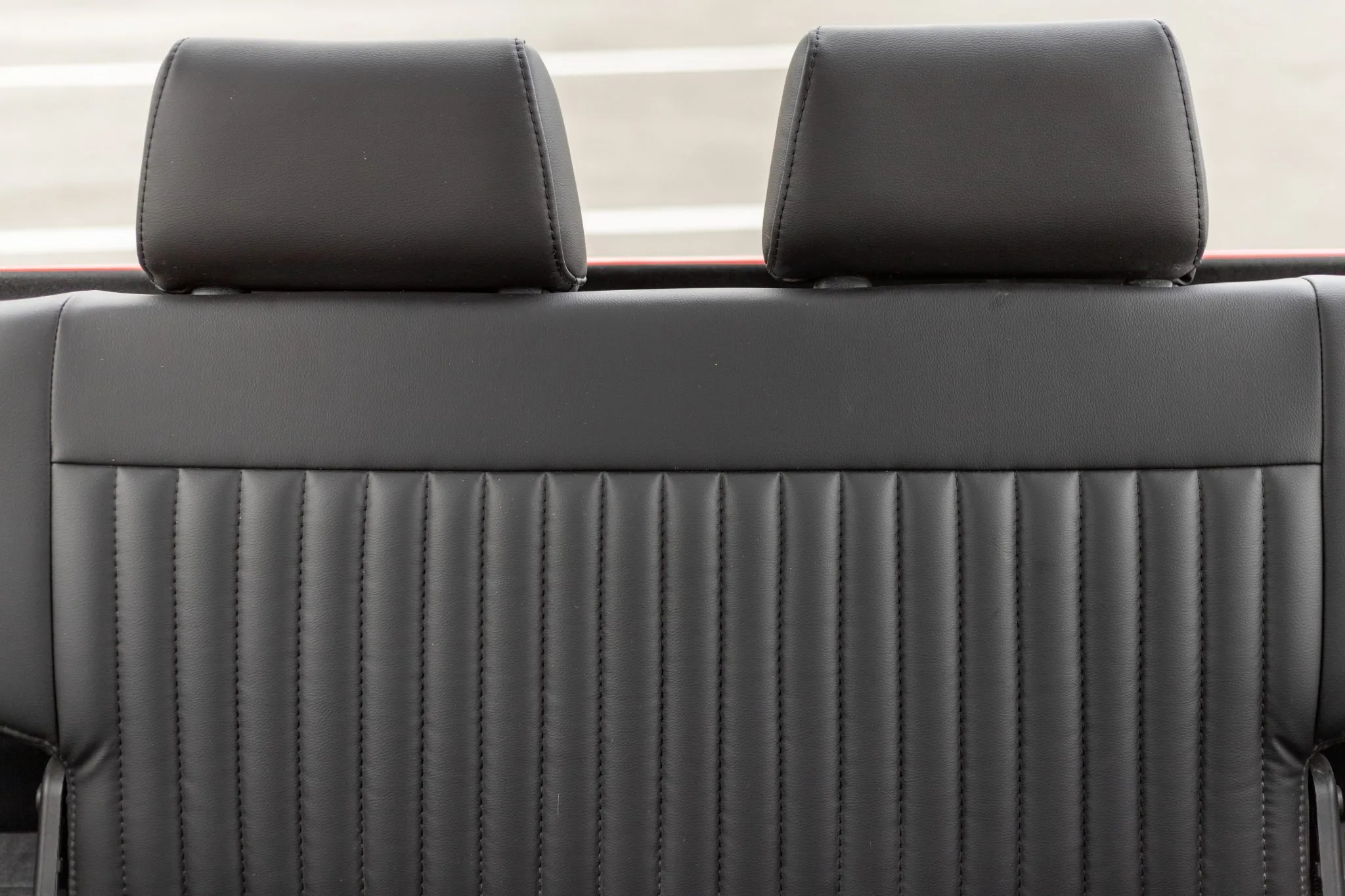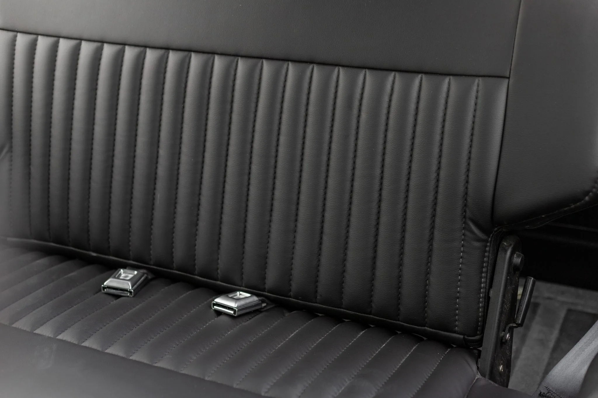 - Black Leather Upholstery – Front bucket seats and rear bench with matching dash, console, and door panels