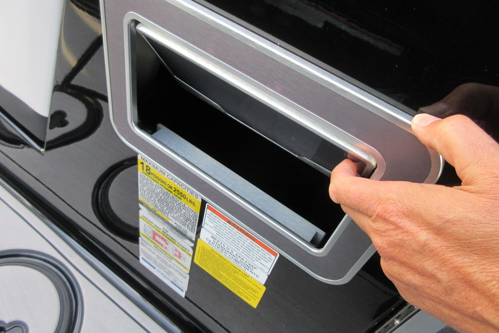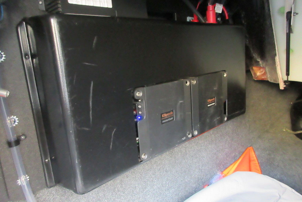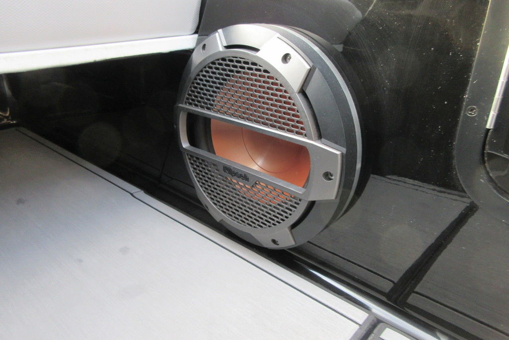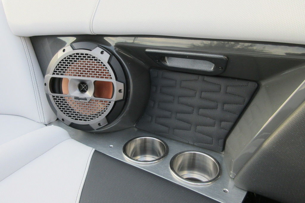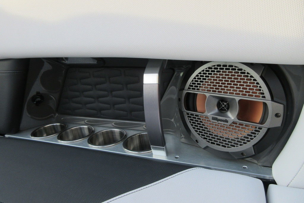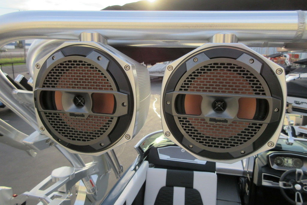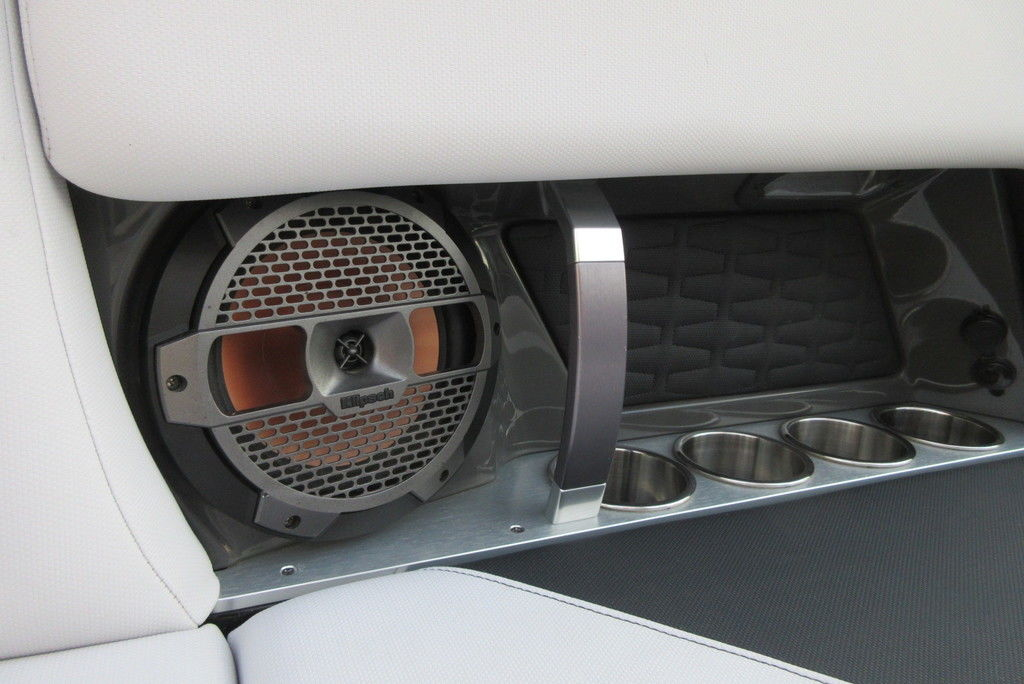 - Klipsch Audio System – Crisp, powerful sound with: (2) Subwoofers, (4) 8.5″ Tower Speakers, Dual Dash Speakers, Transom Remote