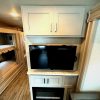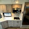 Your search for the perfect family-friendly coach is found in this Miramar! The triple slides provide tons of space to move about, and you can sleep a total of nine people each night thanks to the added overhead bunk and bunk beds. There are two full baths for added convenience, and plenty of storage space for everyone’s belongings. Gather at the Dream Dinette or sofa bed to enjoy the Always-In-View 39″ TV, and an optional fireplace can be added for a more at-home feel. This Miramar kitchen is packed with everything you need to prepare meals each day, including a stainless steel convection microwave, a two burner single induction cooktop, plus a residential refrigerator and a pantry for food storage.