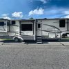 This fifth wheel stands out with six-point auto-leveling for precision stabilization, central vacuum system for whole-unit cleaning, 2″ receiver hitch for towing capability, and residential-grade everything. A luxury home on wheels with every high-end amenity for full-time living, offering the perfect combination of comfort, technology, and premium features.