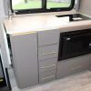 - Dometic double-door refrigerator (110V/12V) offers flexible power options
