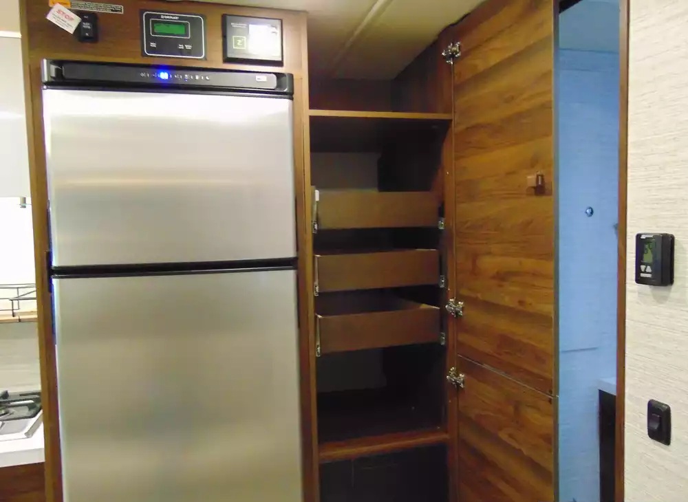 - Norcold double-door refrigerator (gas/110V) offers flexible cooling options